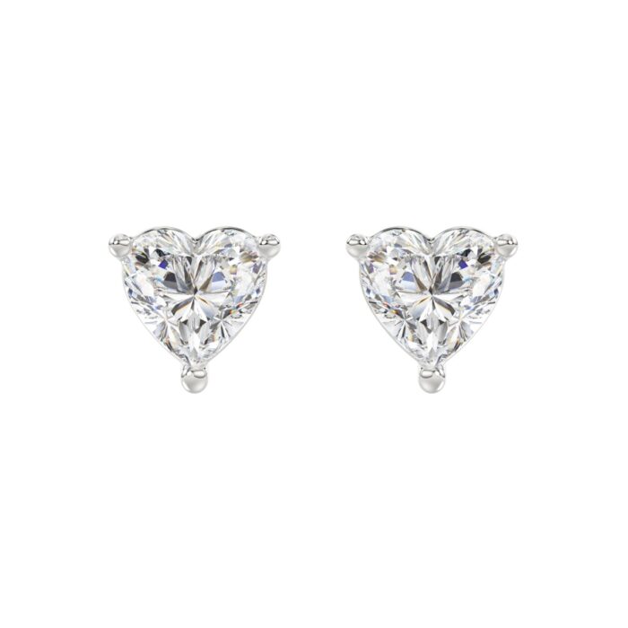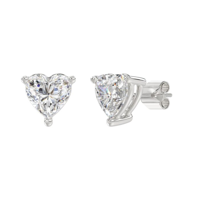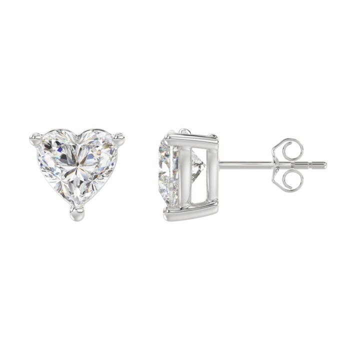 LADIES SOLITAIRE EARRINGS 3CT HEART DIAMOND 14K WHITE GOLD