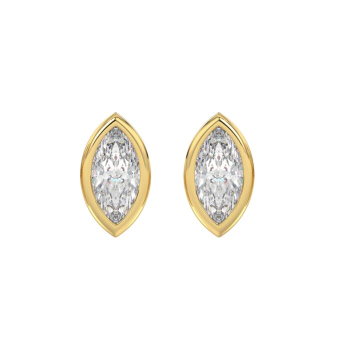 LADIES SOLITAIRE EARRINGS 3CT MARQUISE DIAMOND 14K YELLOW GOLD