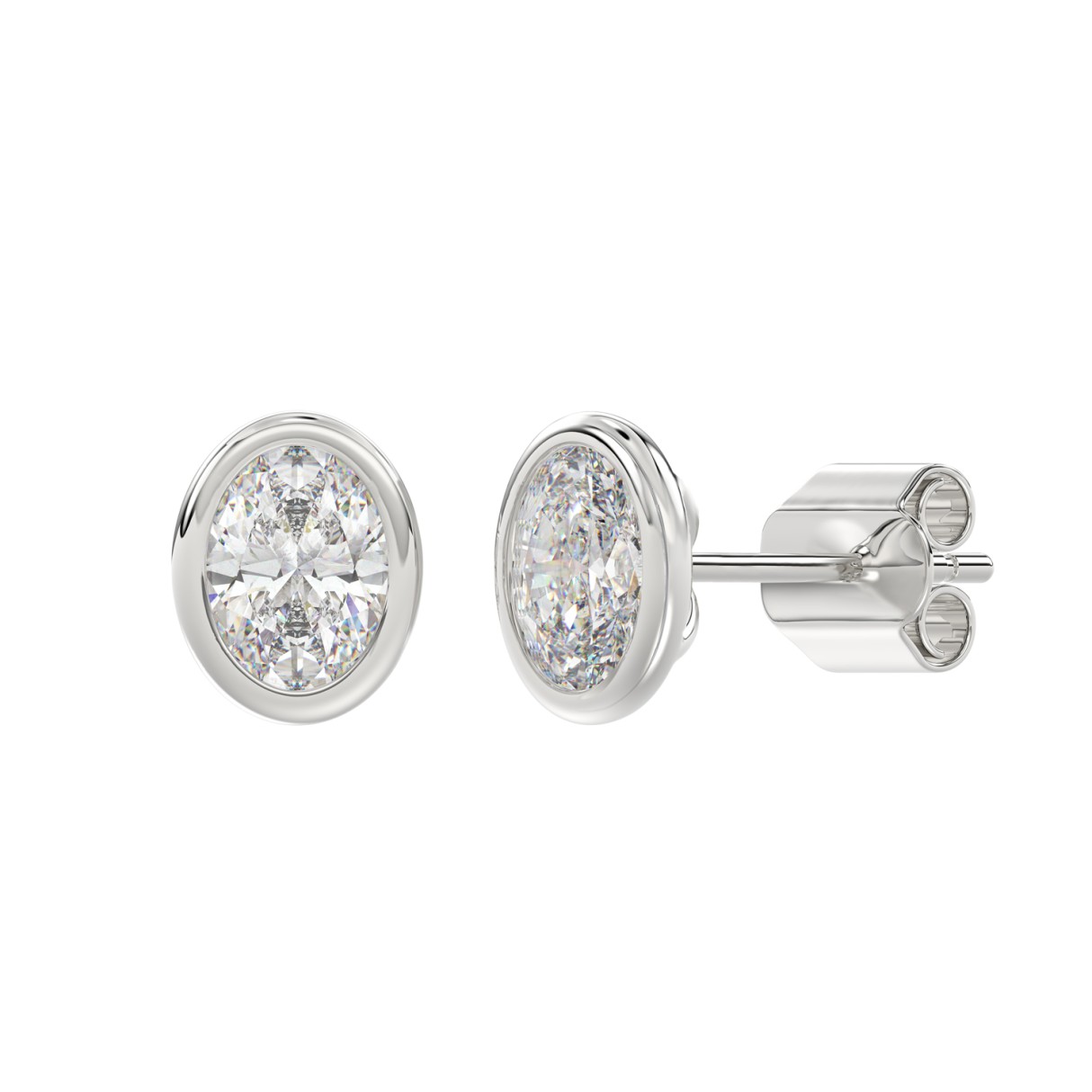 LADIES SOLITAIRE EARRINGS 3CT OVAL DIAMOND 14K WHITE GOLD
