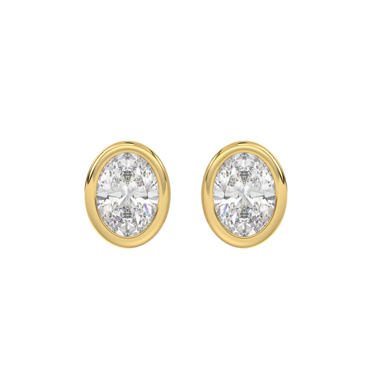 LADIES SOLITAIRE EARRINGS 3CT OVAL DIAMOND 14K YELLOW GOLD