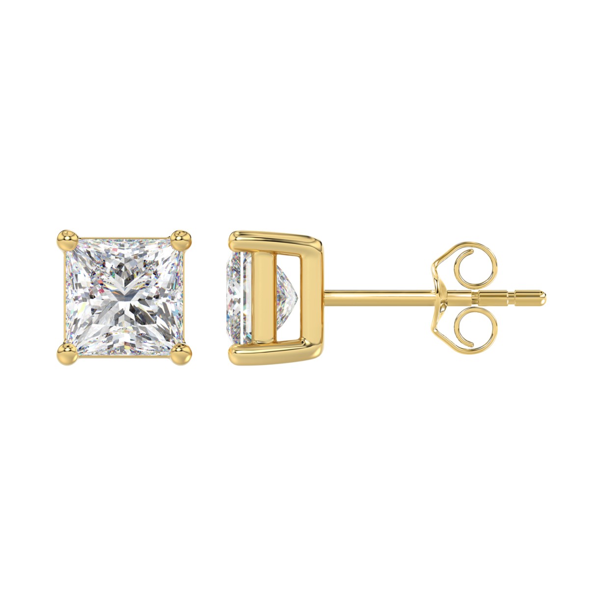 LADIES SOLITAIRE EARRINGS 3CT PRINCESS DIAMOND 14K YELLOW GOLD