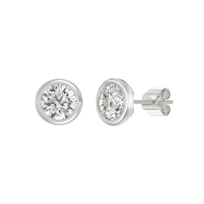 LADIES SOLITAIRE EARRINGS 3CT ROUND DIAMOND 14K WHITE GOLD