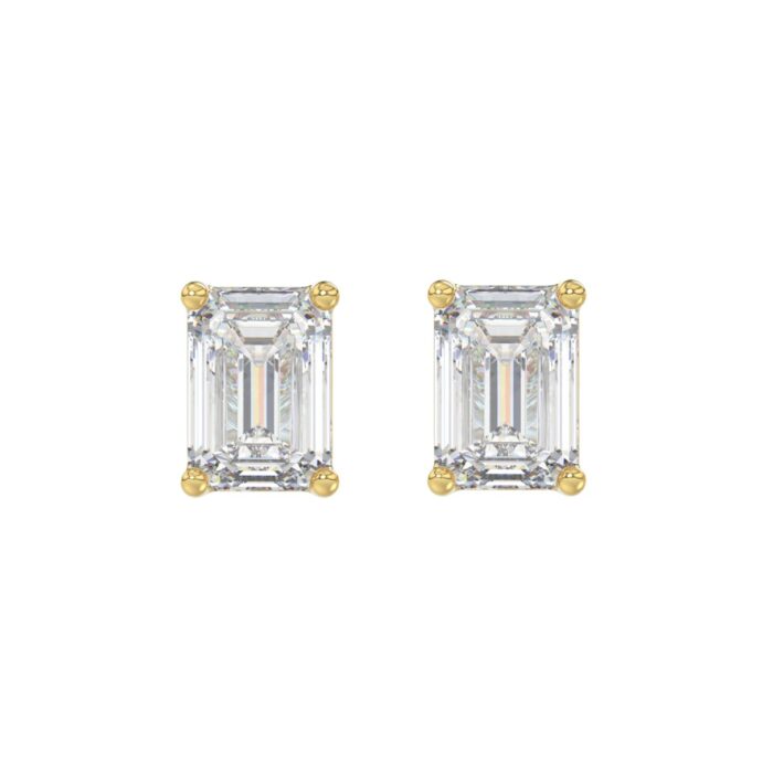 LADIES SOLITAIRE EARRINGS 4.00CT EMERALD DIAMOND 14K YELLOW GOLD