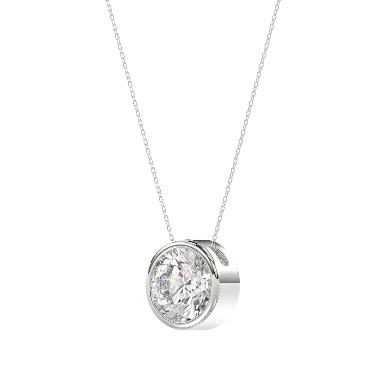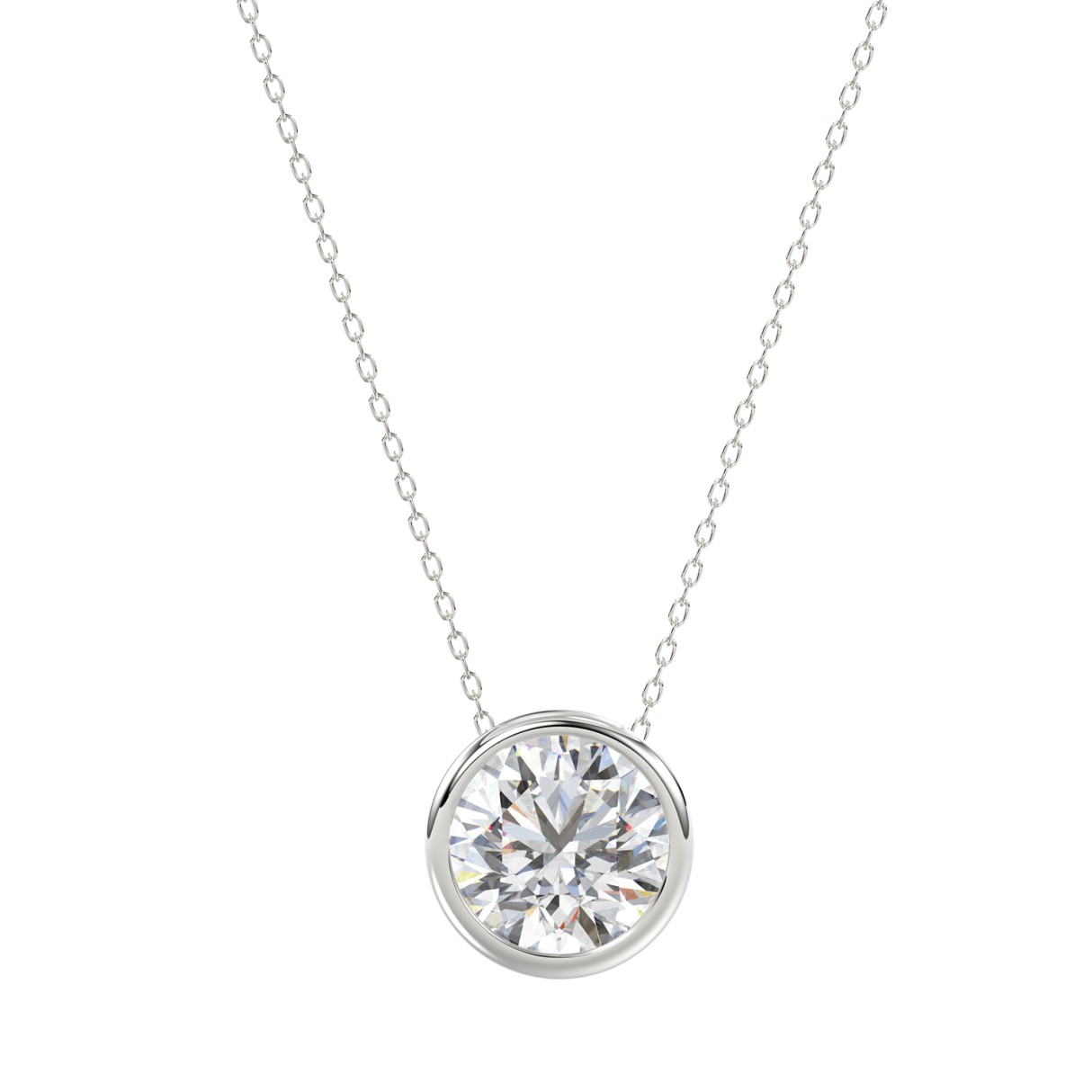 LADIES SOLITAIRE PENDANT 1CT ROUND DIAMOND 14K WHITE GOLD WITH CHAIN