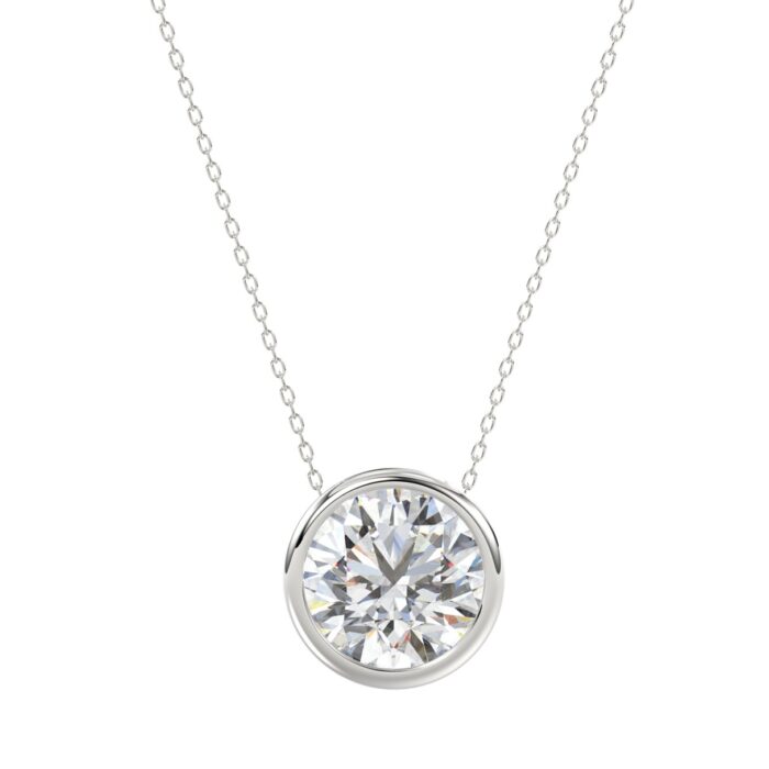 LADIES SOLITAIRE PENDANT 2CT ROUND DIAMOND 14K WHITE GOLD