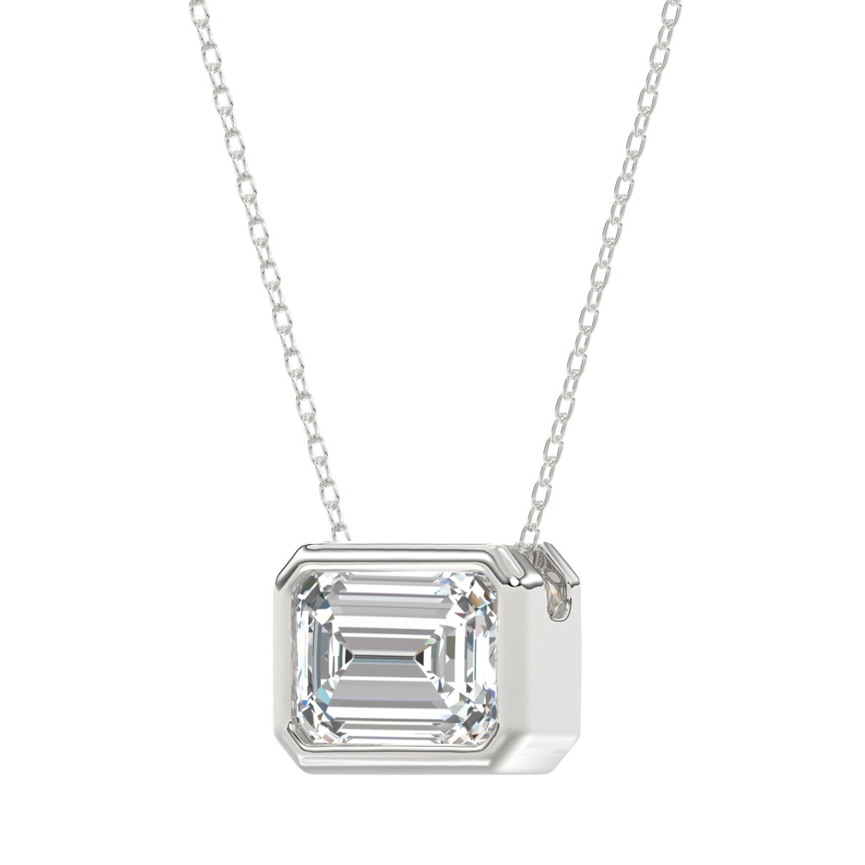 LADIES SOLITAIRE PENDANT 3CT EMERALD DIAMOND 14K WHITE GOLD