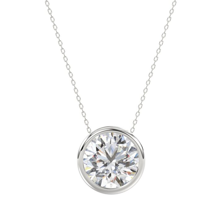 LADIES SOLITAIRE PENDANT 3CT ROUND DIAMOND 14K WHITE GOLD