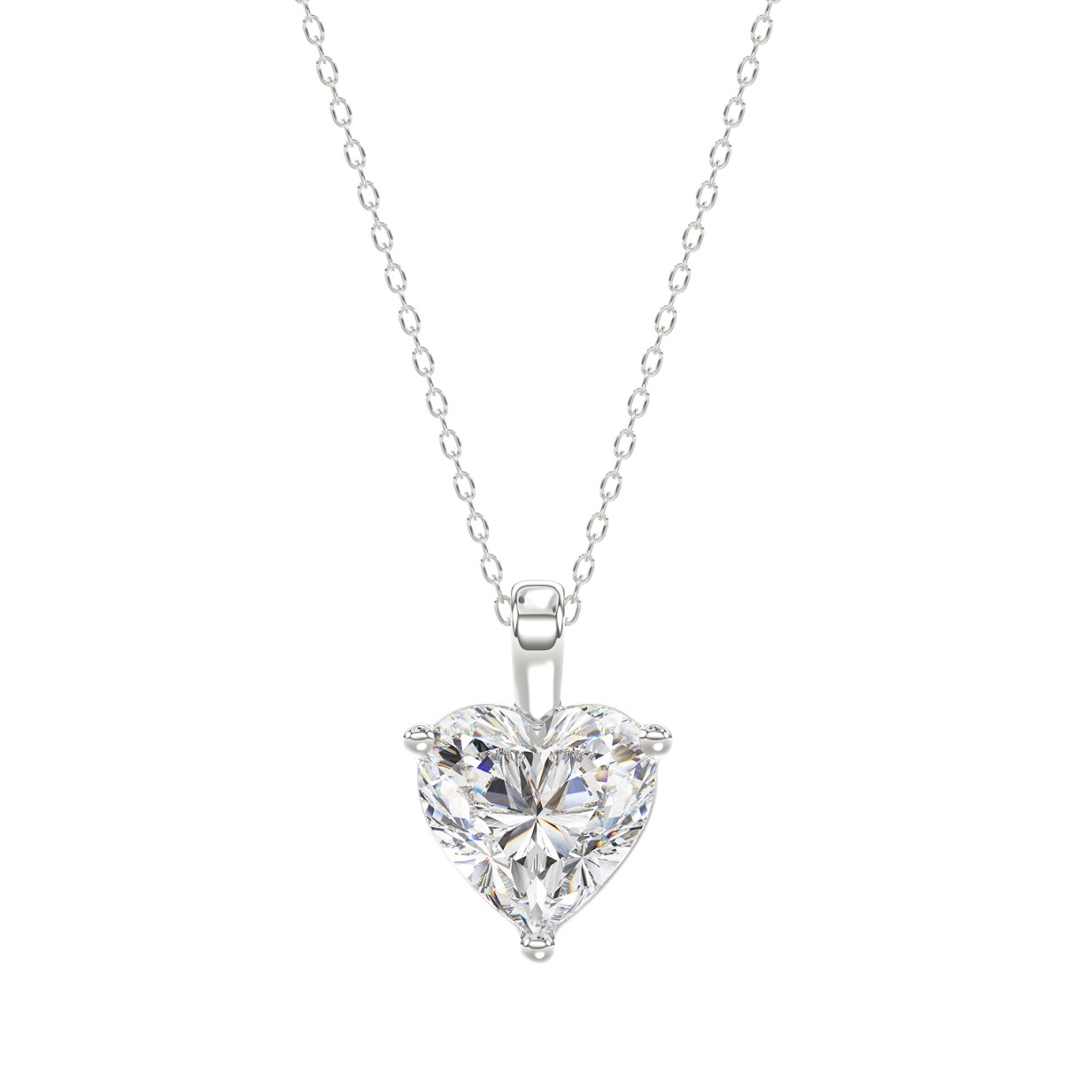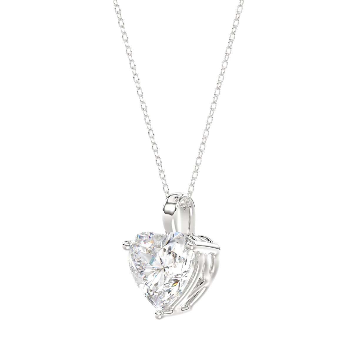 LADIES SOLITAIRE PENDANT WITH CHAIN 1 1/2CT HEART DIAMOND 14K WHITE GOLD