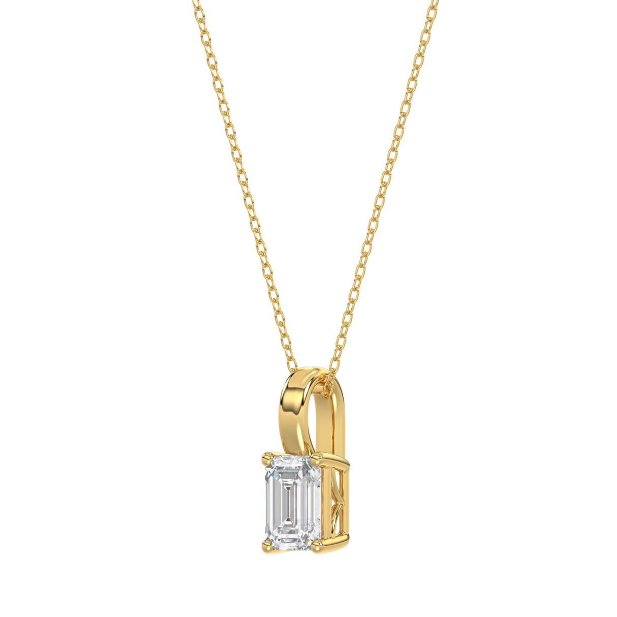 LADIES SOLITAIRE PENDANT WITH CHAIN 1/2CT EMERALD DIAMOND 14K YELLOW GOLD