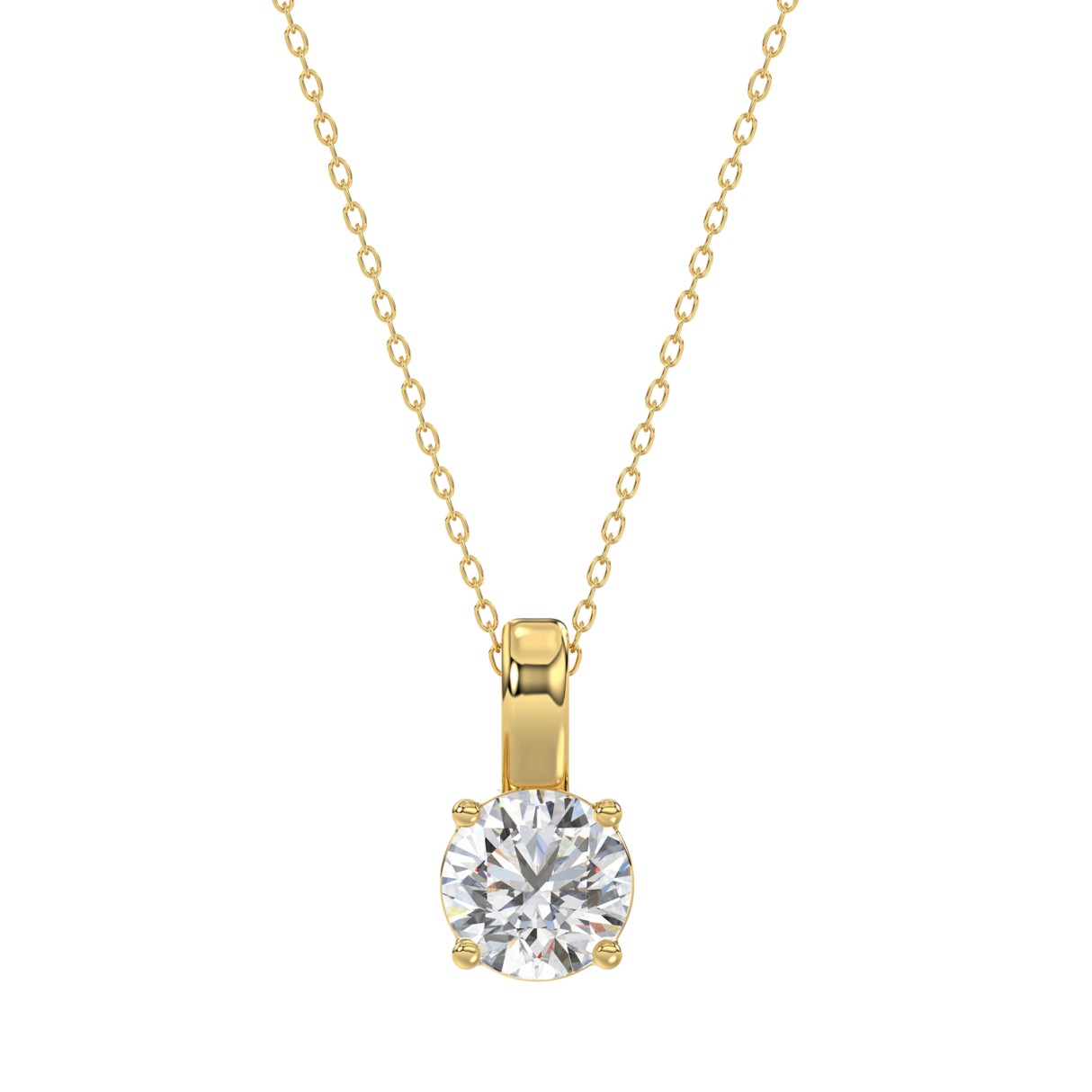 LADIES SOLITAIRE PENDANT WITH CHAIN 1/2CT ROUND DIAMOND 14K YELLOW GOLD