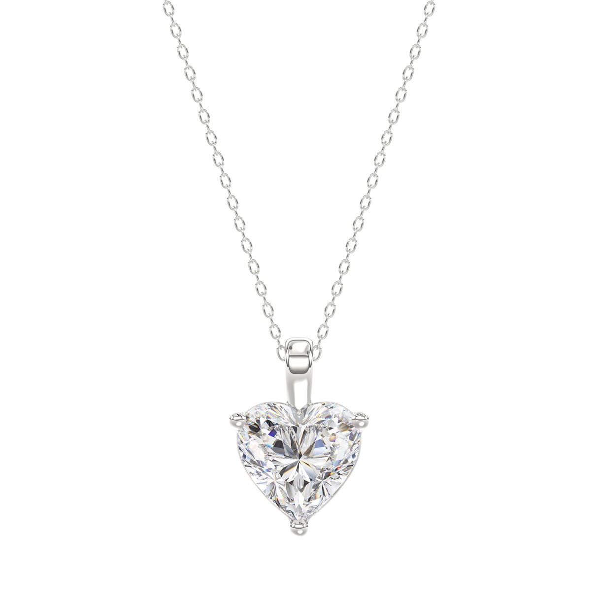 LADIES SOLITAIRE PENDANT WITH CHAIN 1CT HEART DIAMOND 14K WHITE GOLD