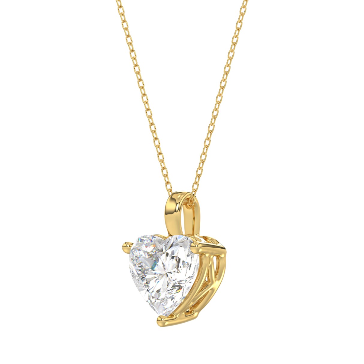 LADIES SOLITAIRE PENDANT WITH CHAIN 2CT HEART DIAMOND 14K YELLOW GOLD