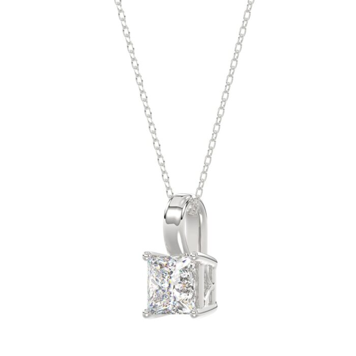 LADIES SOLITAIRE PENDANT WITH CHAIN 2CT PRINCESS DIAMOND 14K WHITE GOLD