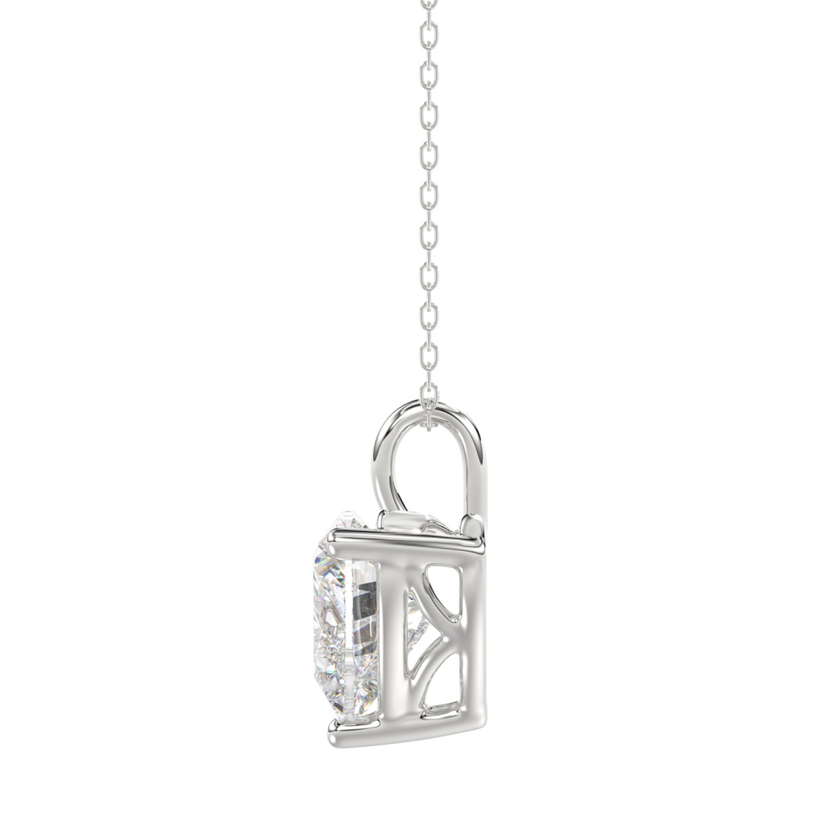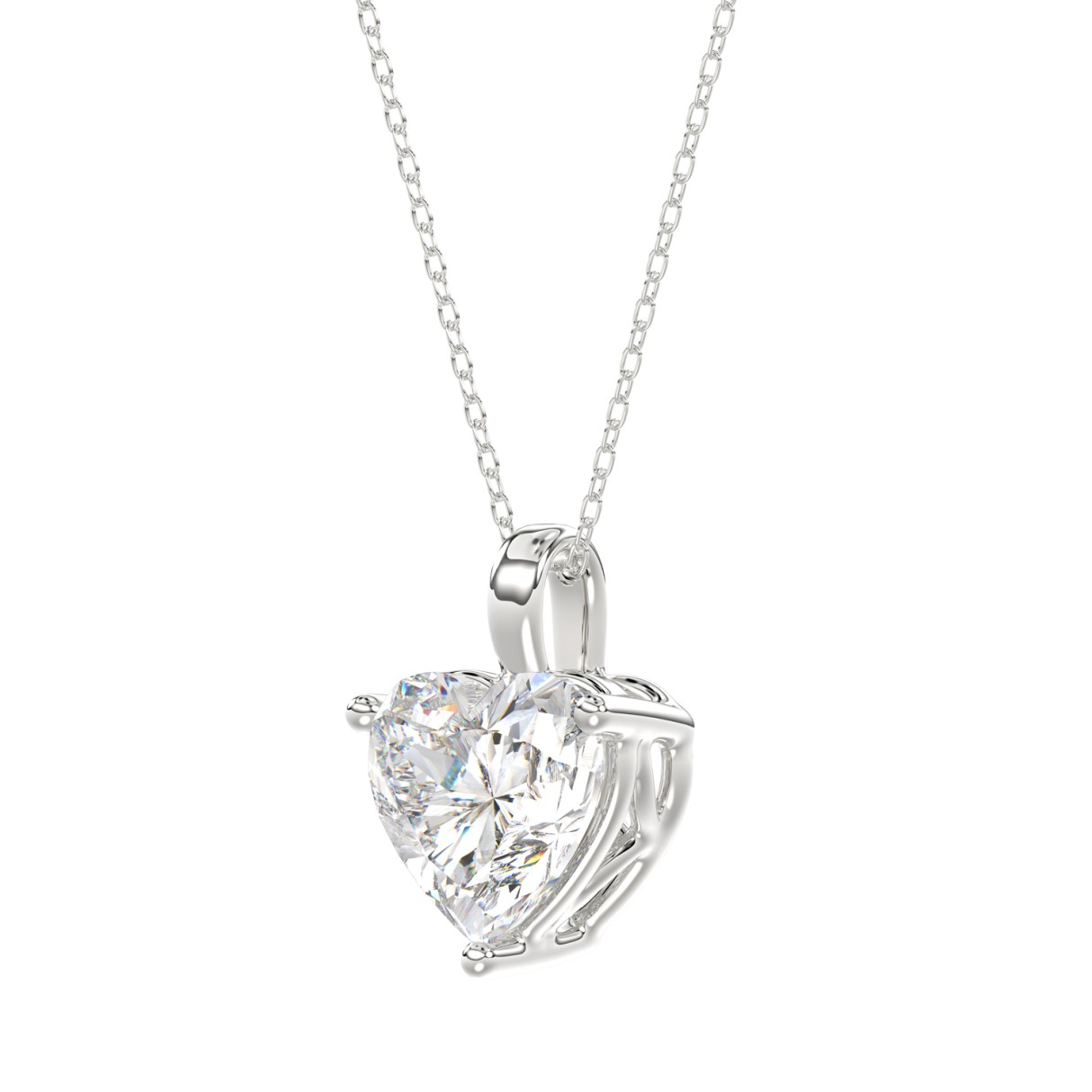 LADIES SOLITAIRE PENDANT WITH CHAIN 3CT HEART DIAMOND 14K WHITE GOLD