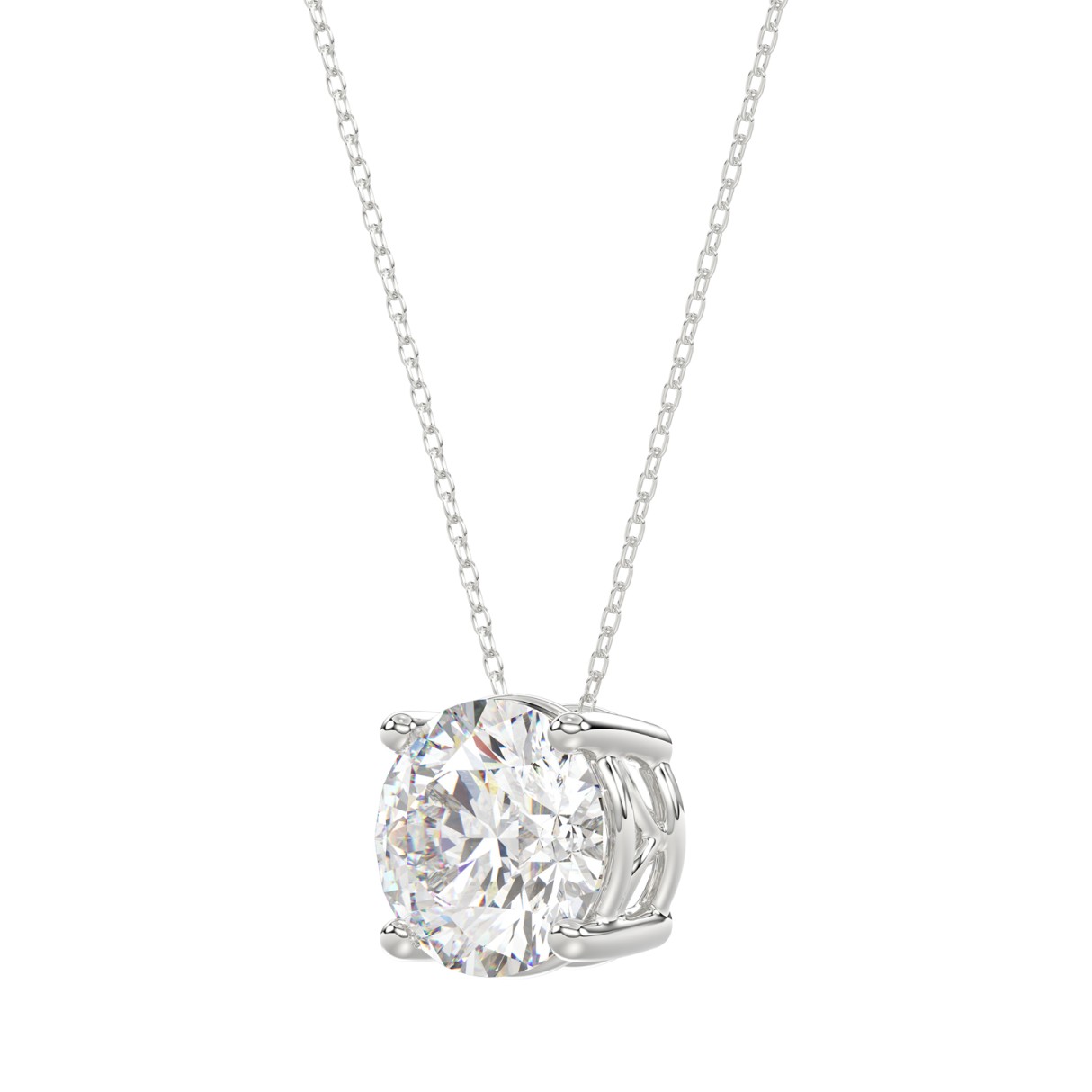 LADIES SOLITAIRE PENDANT WITH UNDER-PASS CHAIN 2 1/2CT ROUND DIAMOND 14K WHITE GOLD