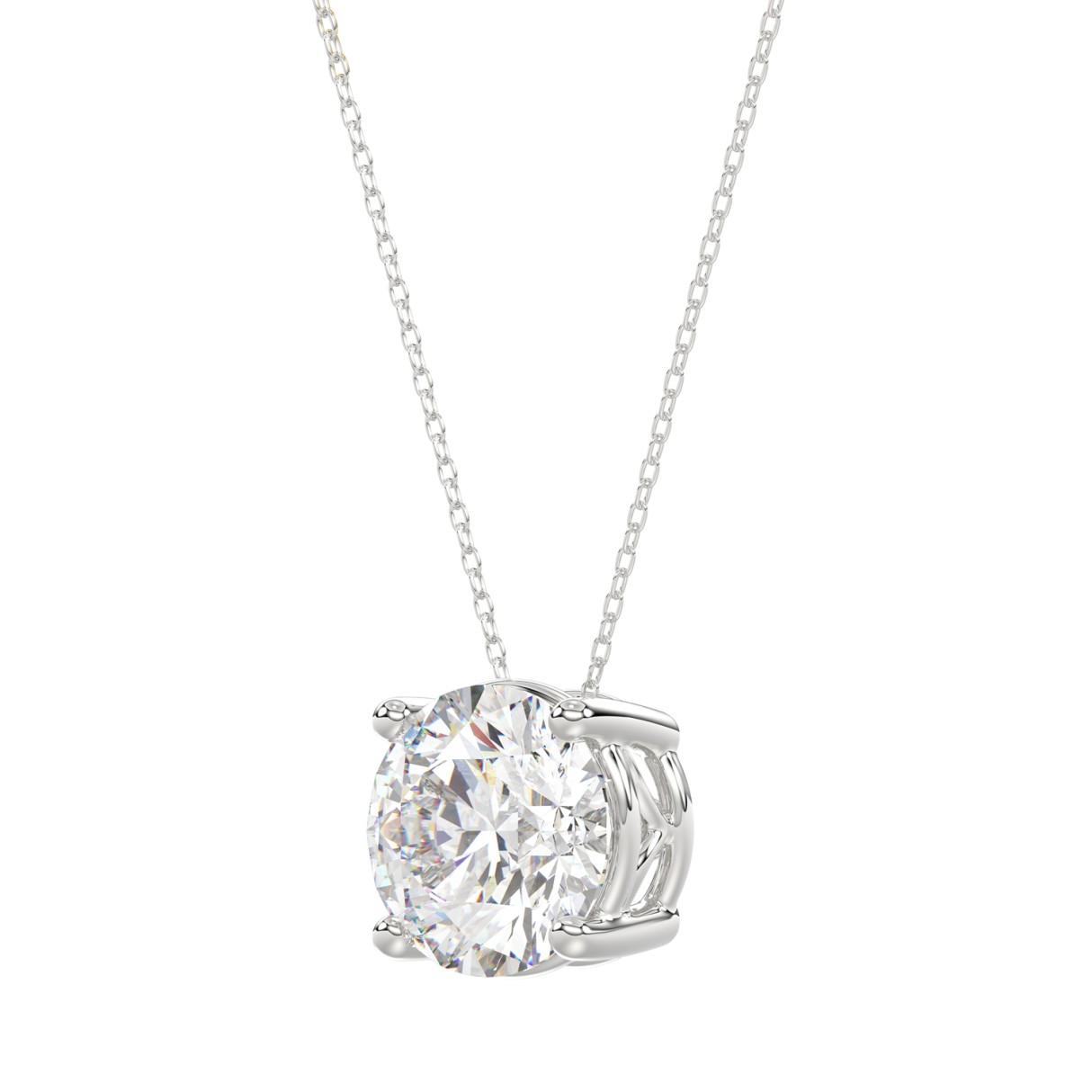 LADIES SOLITAIRE PENDANT WITH UNDER-PASS CHAIN 3CT ROUND DIAMOND 14K WHITE GOLD