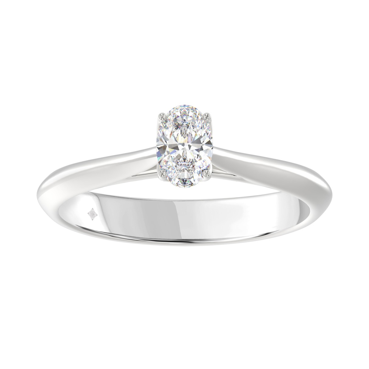 LADIES SOLITAIRE RING 1/2CT OVAL DIAMOND 18K WHITE GOLD