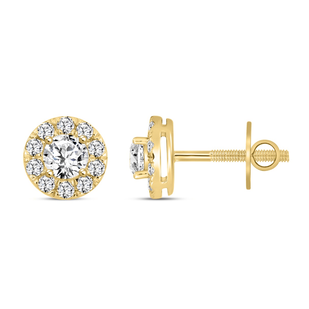 LADIES STUD EARRINGS 1CT ROUND DIAMOND 14K YELLOW GOLD