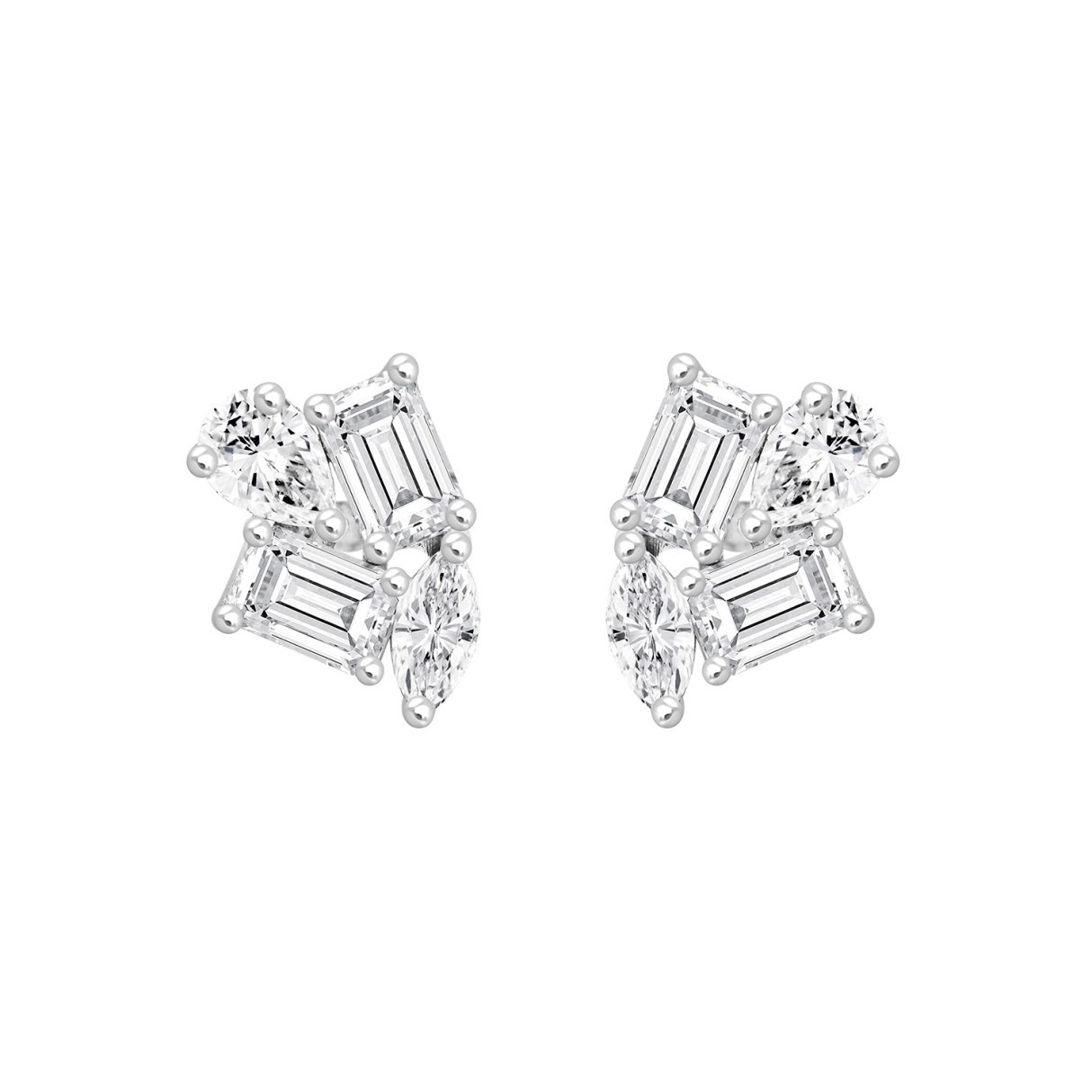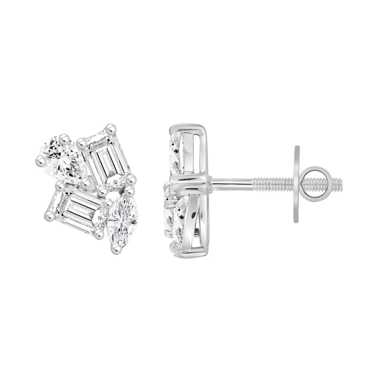 LADIES STUD EARRINGS 2CT EMERALD/PEAR/MARQUISE DIAMOND 14K WHITE GOLD
