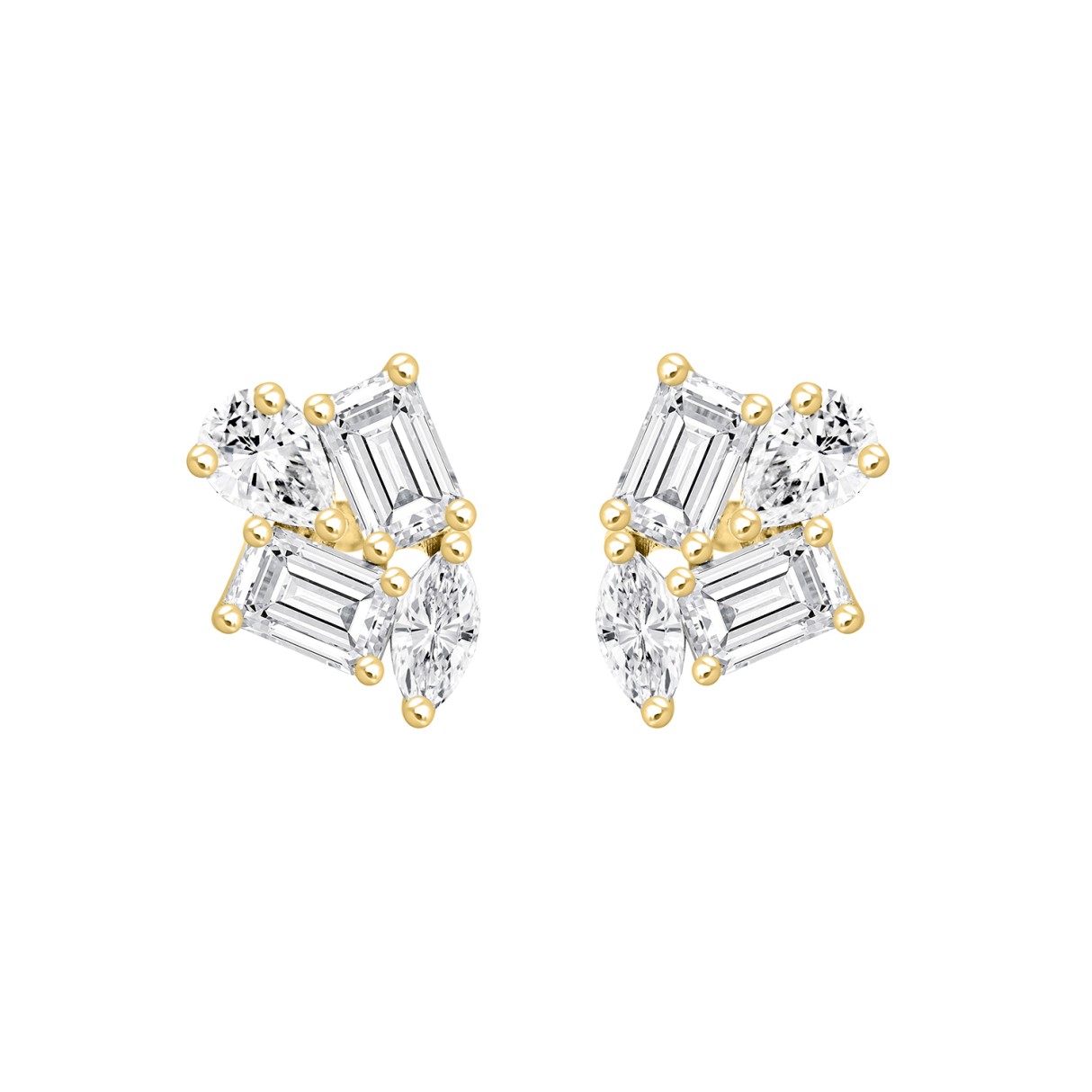 LADIES STUD EARRINGS 2CT EMERALD/PEAR/MARQUISE DIAMOND 14K YELLOW GOLD