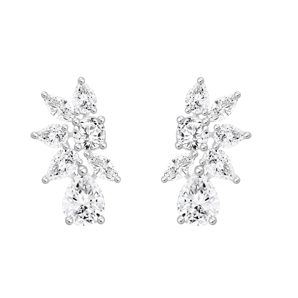 LADIES STUD EARRINGS 4 1/2CT PEAR/ROUND/MARQUISE DIAMOND 14K WHITE GOLD