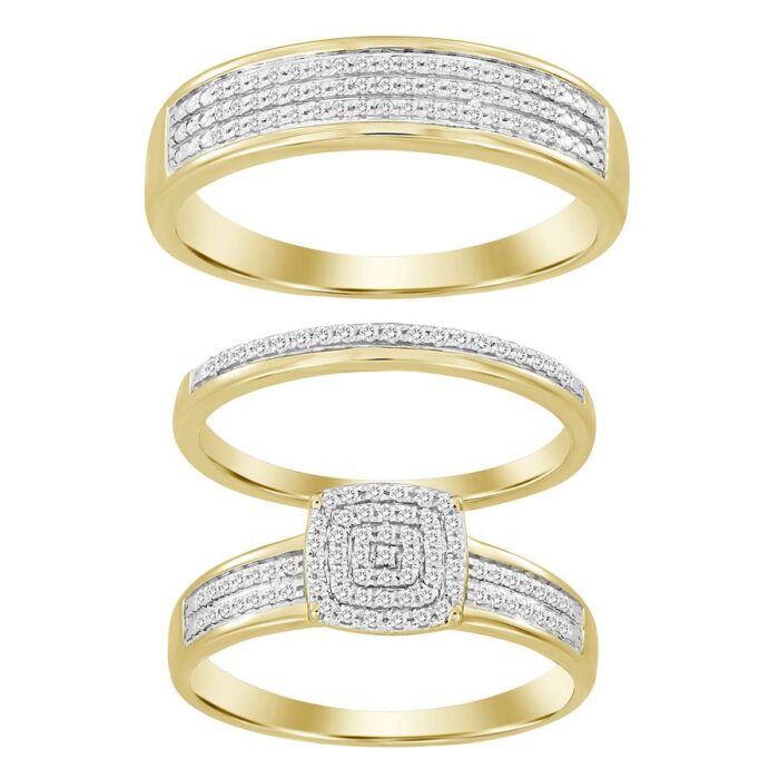 LADIES TRIOS SET 0.33CT ROUND DIAMOND 10K YELLOW GOLD
