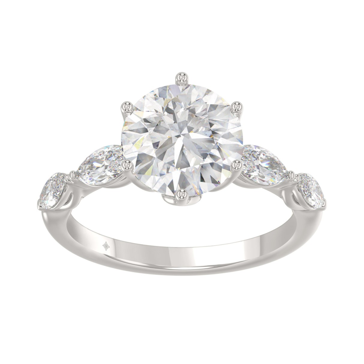 Luxury 14K White Gold Bridal Ring for Ladies 3 3/4CT Round & Marquise Cut Diamonds 3.00CT Round Center stone (Color F-G -Clarity VS1/VS2)