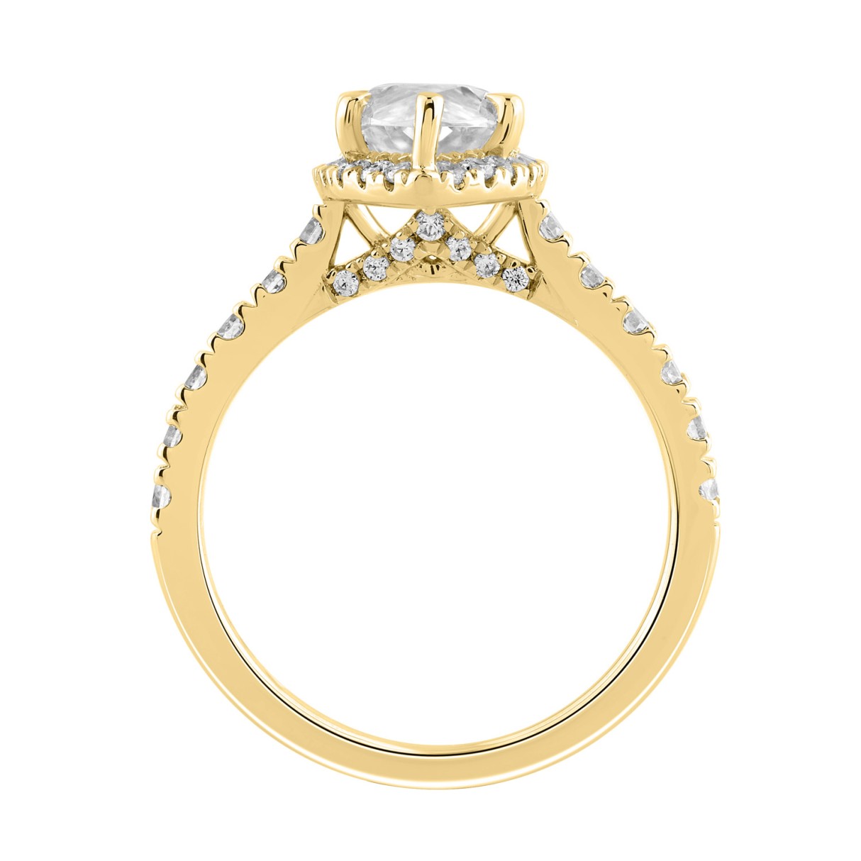 Luxury 14K Yellow Gold 3 3/4Ct Round & Marquise Diamond Halo Ring Elegant Bridal Engagement Ring For Women 3Ct Marquise Center Stone (Color F-G -Clari