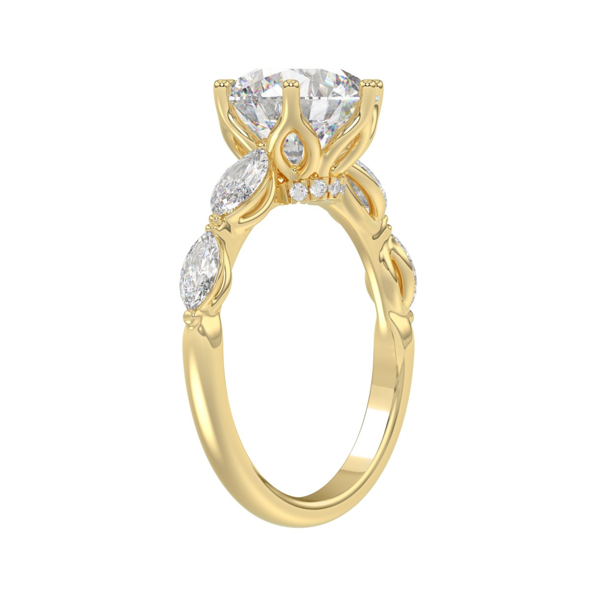 Luxury 14K Yellow Gold Bridal Ring for Ladies 3 3/4CT Round & Marquise Cut Diamonds 3.00CT Round Center stone (Color F-G -Clarity VS1/VS2)