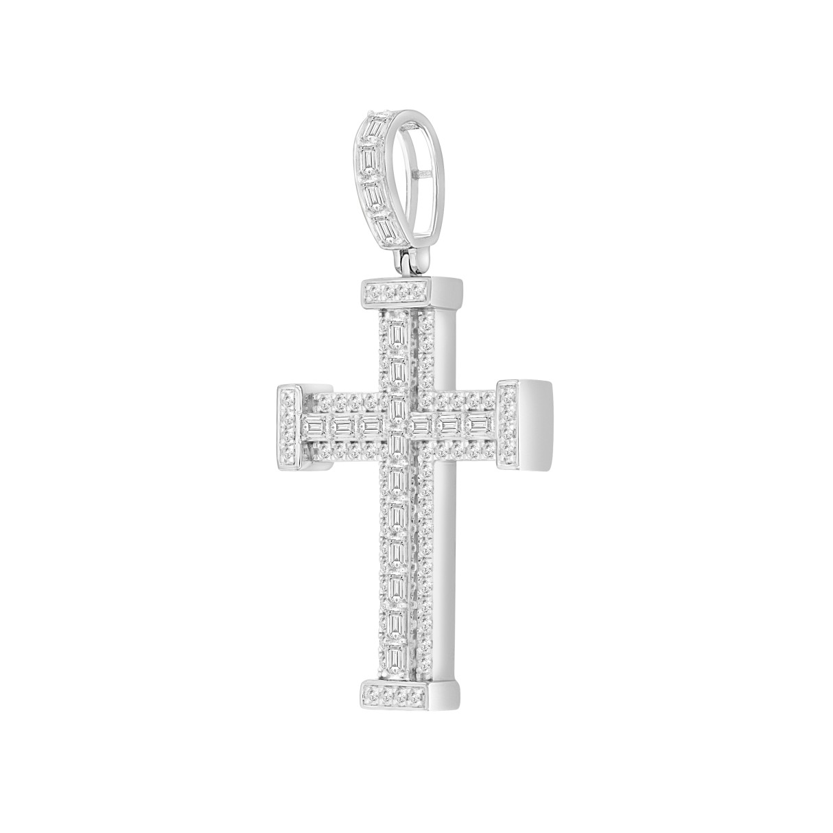 MEN’S CHARM PENDANT 3CT ROUND/EMERALD DIAMOND 14K WHITE GOLD