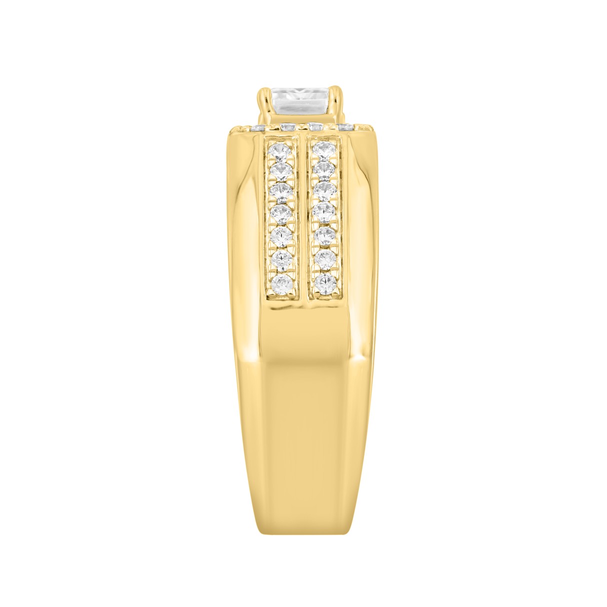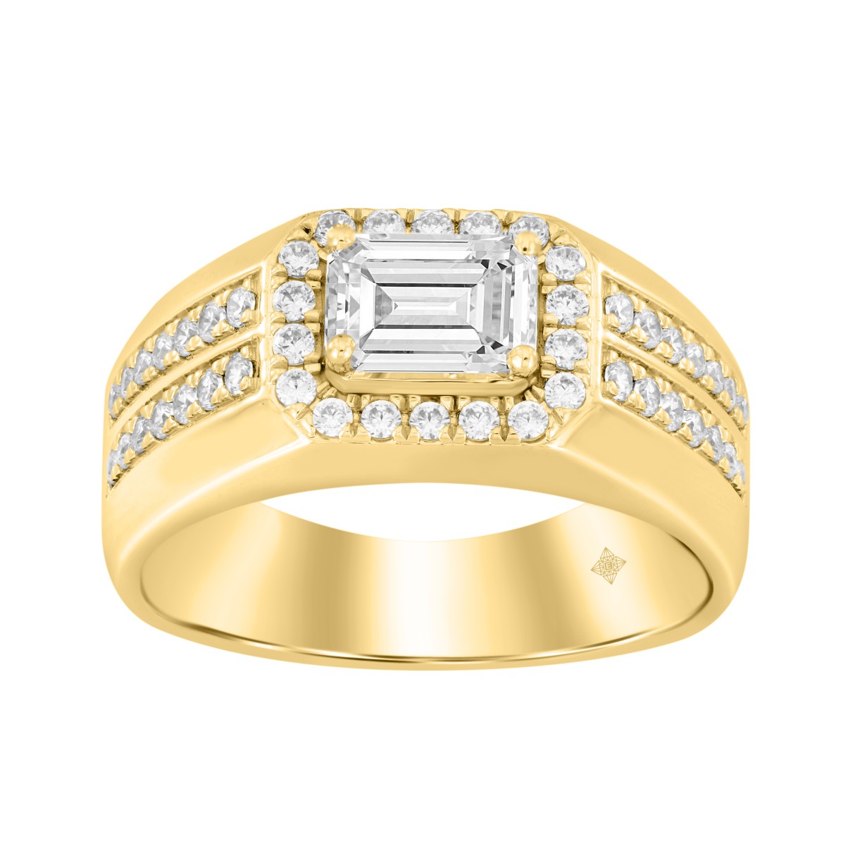 MEN’S RING 1 1/2CT ROUND/EMERALD DIAMOND 14K YELLOW GOLD (CENTER STONE EMERALD DIAMOND 1CT)