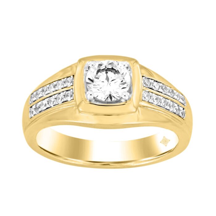 MEN’S RING 1CT ROUND DIAMOND 14K YELLOW GOLD