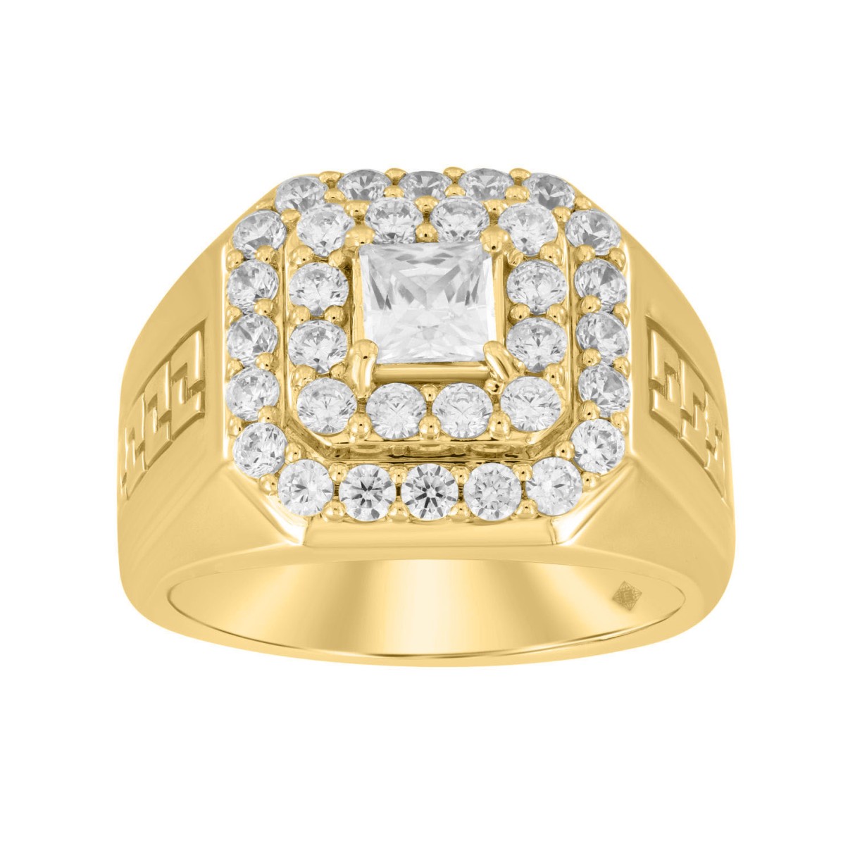 MEN’S RING 2 1/2CT ROUND/PRINCESS DIAMOND 10K YELLOW GOLD (CENTER STONE PRINCESS DIAMOND 1CT )