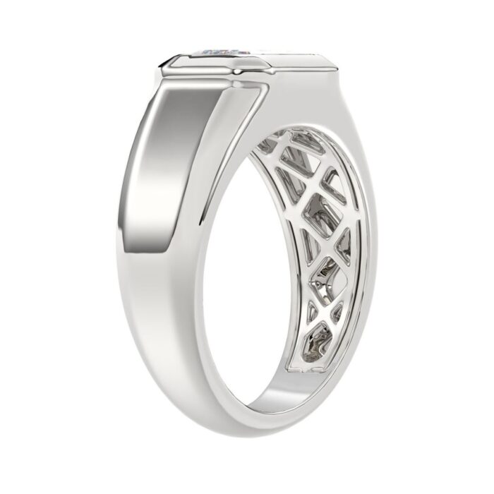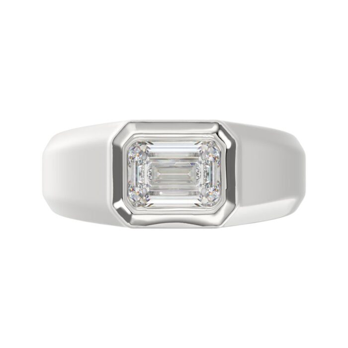 MEN’S RING 2CT EMERALD DIAMOND 14K WHITE GOLD (CENTER STONE EMERALD DIAMOND 2CT )