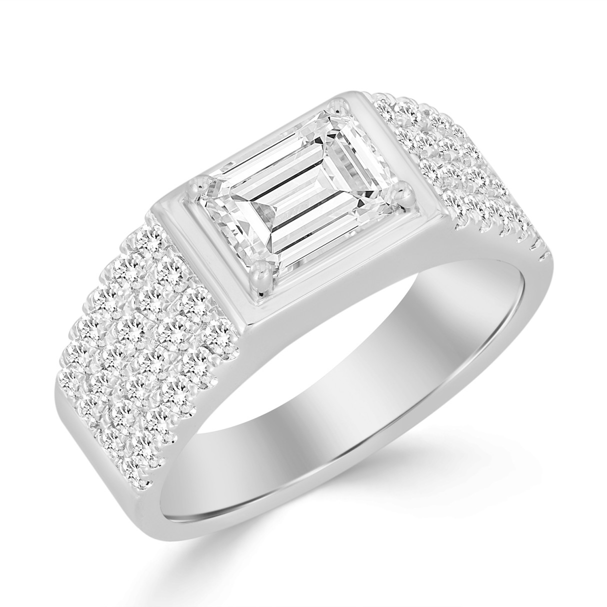 MEN’S RING 3CT EMERALD/ROUND DIAMOND 14K WHITE GOLD (CENTER STONE EMERALD DIAMOND 2CT )