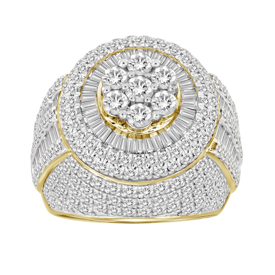 MEN’S RING 5.00CT ROUND/BAGUETTE DIAMOND 10K YELLOW GOLD