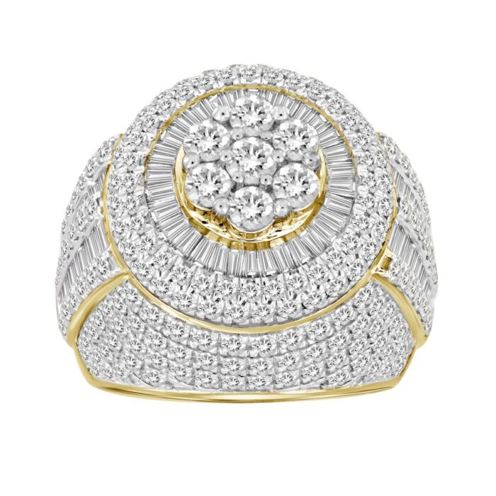 MEN’S RING 5.00CT ROUND/BAGUETTE DIAMOND 10K YELLOW GOLD