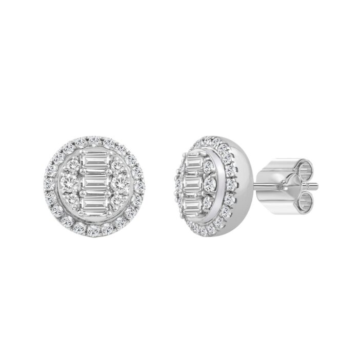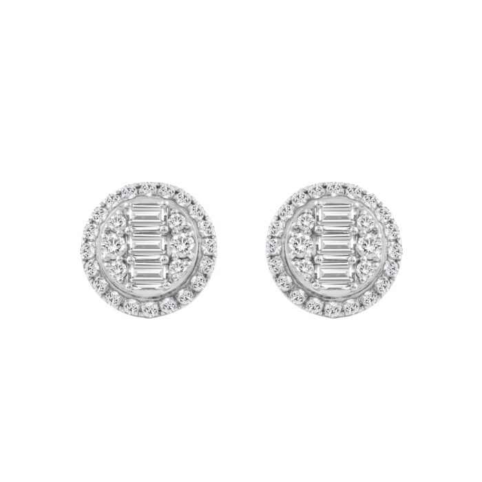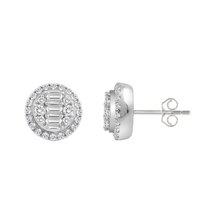 STERLING SILVER WHITE 1 1/4CT ROUND/EMERALD DIAMOND LADIES EARRINGS