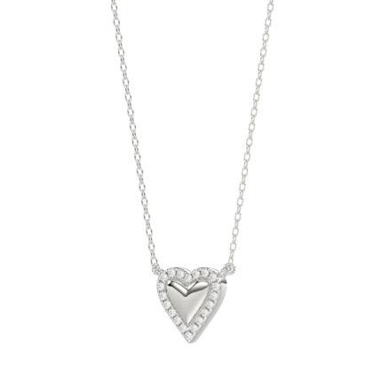 Round Diamond Heart Necklace, 0.10Ct Sterling Silver Love Necklace, Minimal Heart Charm Pendant For Your Loved One, Girlfriend Gift