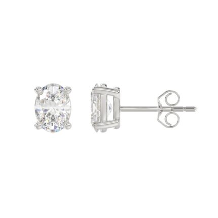 LADIES SOLITAIRE EARRINGS 2CT OVAL DIAMOND 14K WHITE GOLD