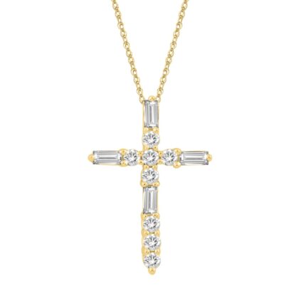 10K YELLOW GOLD 1/4CT ROUND/BAGUETTE DIAMOND LADIES PENDANT