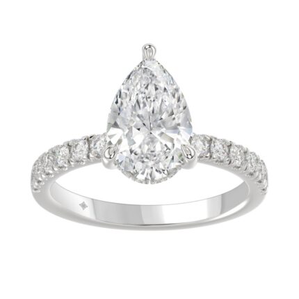 14K WHITE GOLD 3 1/2CT ROUND/PEAR DIAMOND LADIES RING (CENTER STONE PEAR DIAMOND 3CT)