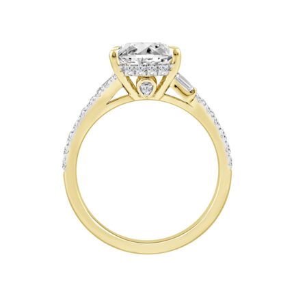 14K YELLOW GOLD 2 1/2CT ROUND/CUSHION/BAGUETTE DIAMOND LADIES RING (CENTER STONE CUSHION DIAMOND 2CT)