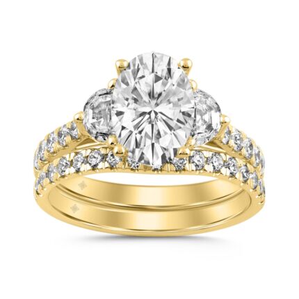 LADIES BRIDAL SET 3 1/3CT ROUND/OVAL/HALF MOON 14K YELLOW GOLD (CENTER STONE OVAL DIAMOND 2CT )