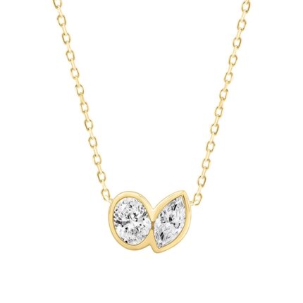 3/4CT Yellow Gold 10K Collection Linked Hearts Two-Stone Diamond Fashion Ladies Necklace Round & Pear Cut Diamond (Color F-G -Clarity VS1/VS2)